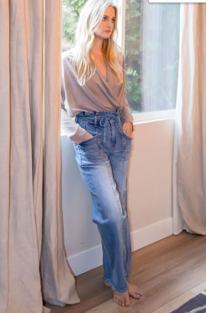 The Jennifer Ultra Hi Rise Paperbag Straight Leg Jeans are another trendy pair your closet needs. These cute Veveret brand jeans are made of a comfortable stretch denim with with a ultra high rise fit, 4 pocket cut, paperbag waist with string tie belt, flattering seamed detailing and relaxed straight pant legs.